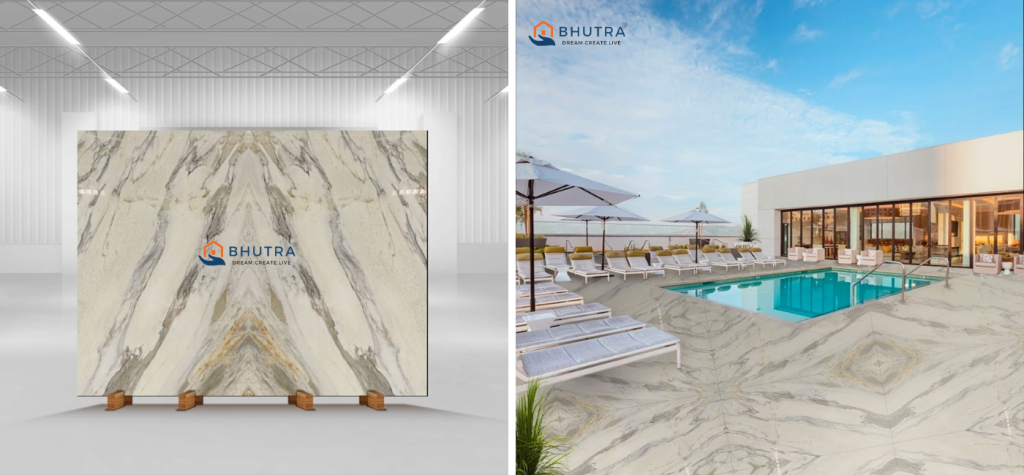 Calacatta marble, on the other hand, is another well-liked marble, hailing from the Apuan Alps in Tuscany, known for its vibrant white base and striking, bold veining, frequently used in upscale settings, including luxury hotels, high-end residential projects, and high-class retail stores.