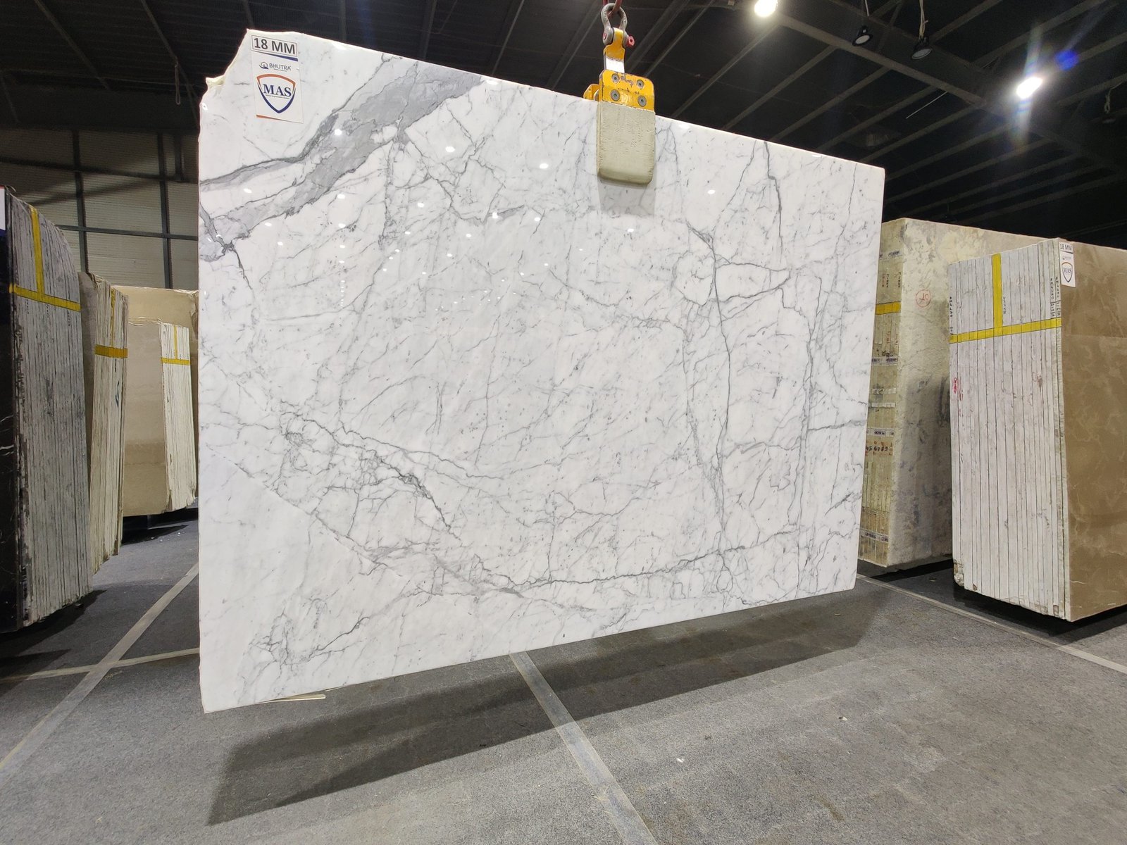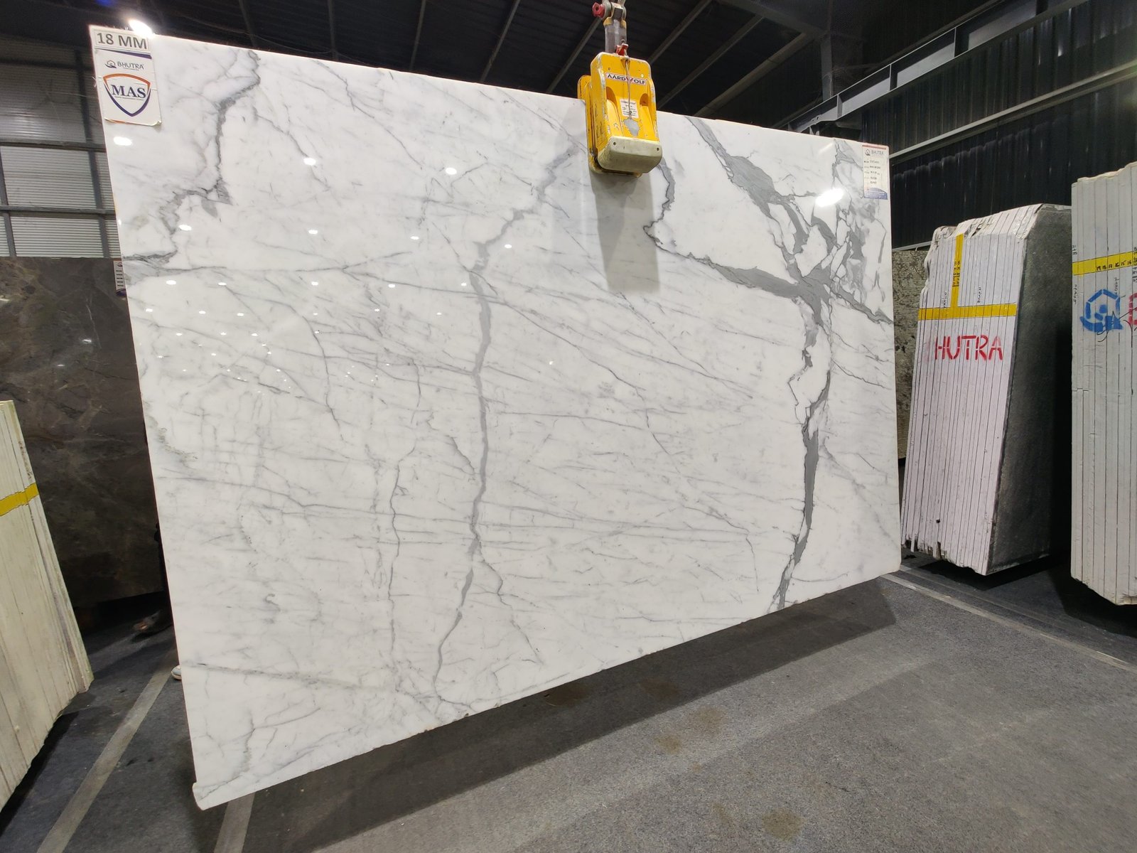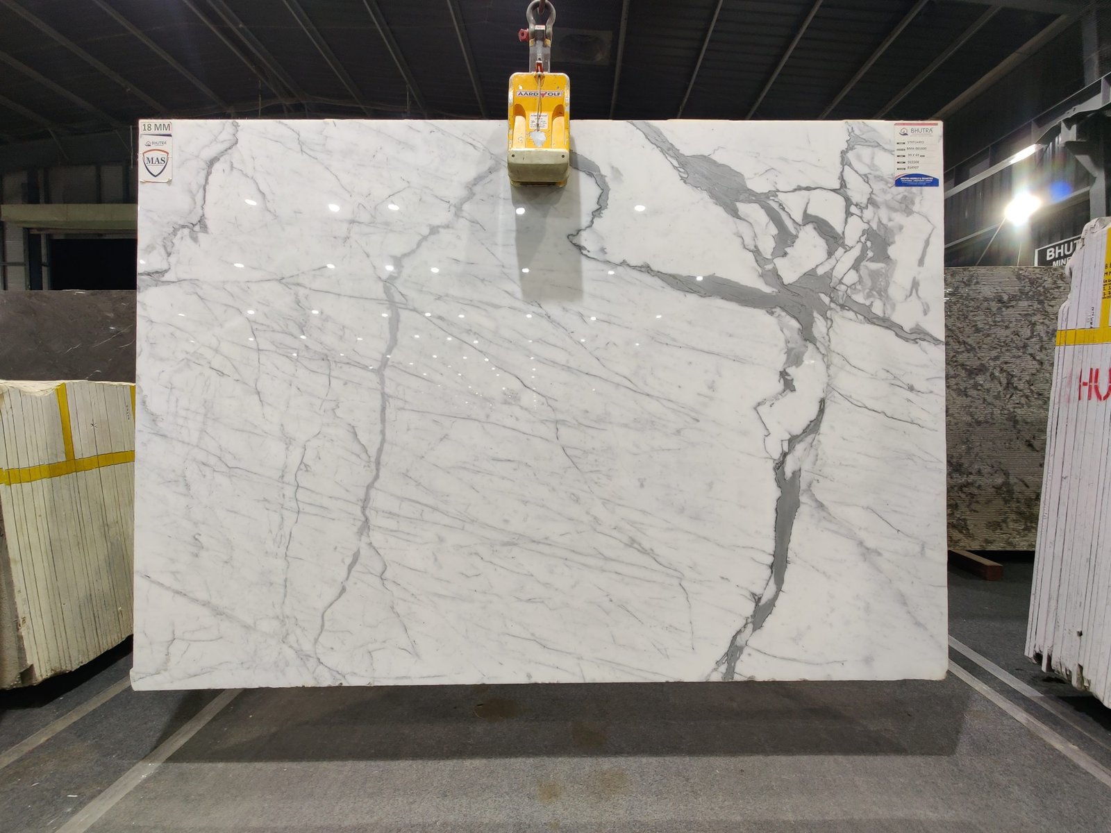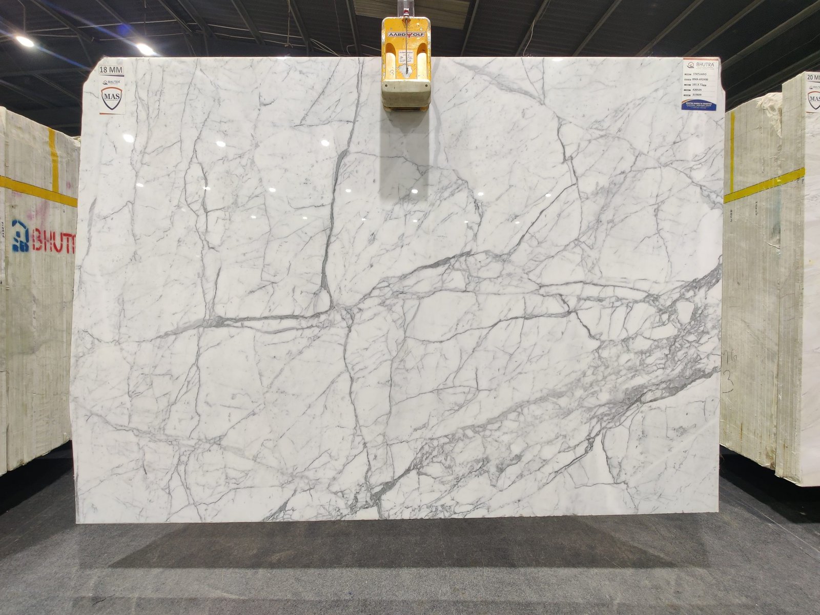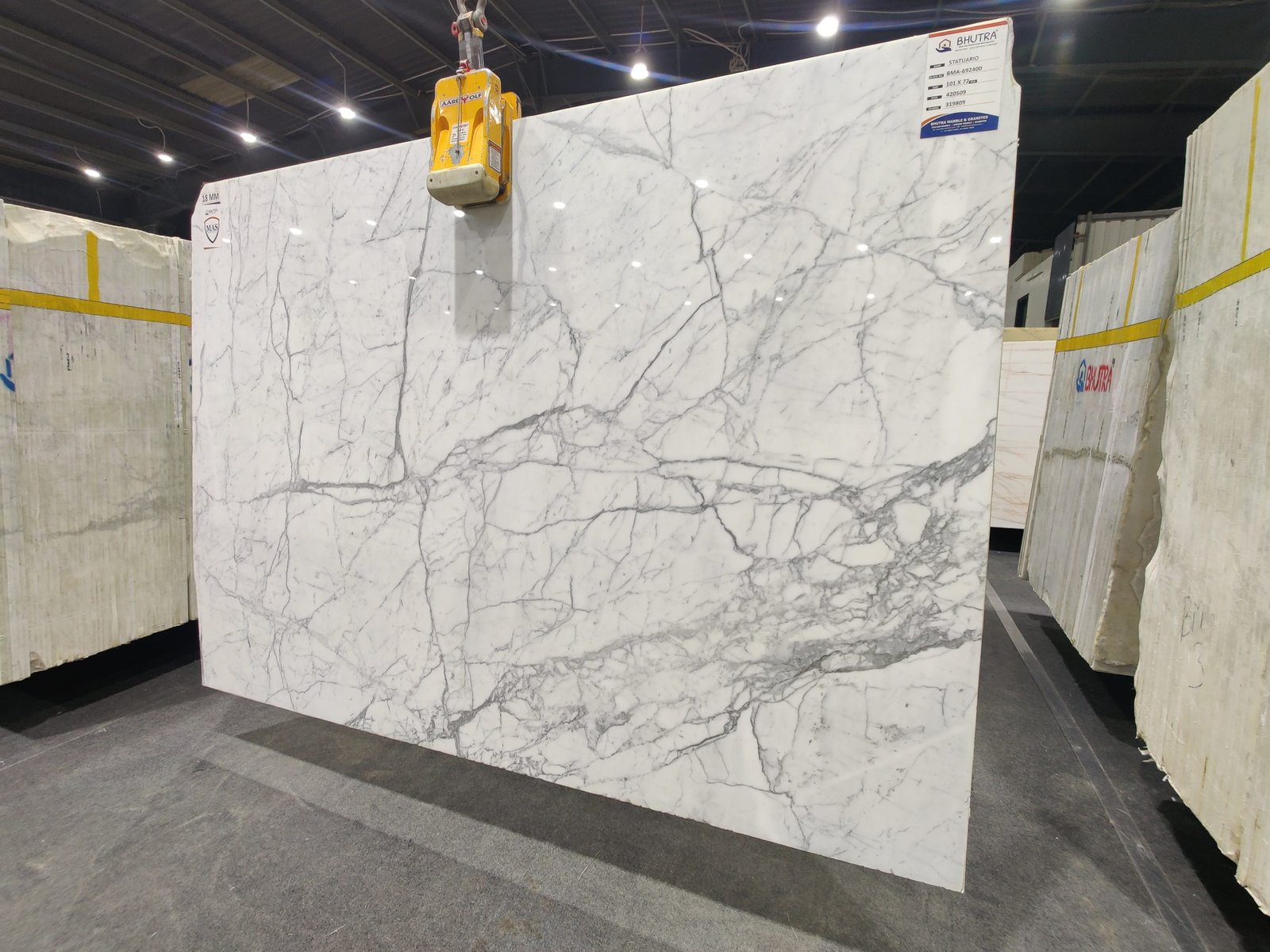 Statuario Marble, a timeless material with a stunning white background and dark gray veining, is now available in Tumkur.
