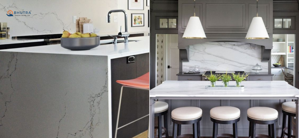 Natural quartz is a popular choice for designing or revamping backsplashes and countertops due to its distinctive patterns. However, it’s worth noting that the entire surface is porous, which means it can wear off over time.
