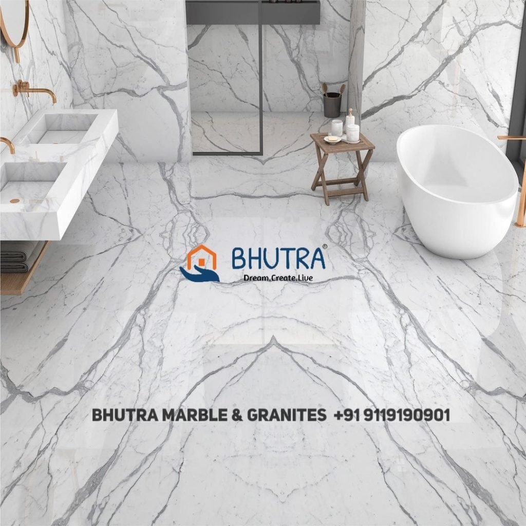 Statuario marble is used for flooring, countertops, bathroom surfaces, wall cladding, and decorative elements in Indian homes, adding a touch of luxury to interior spaces.