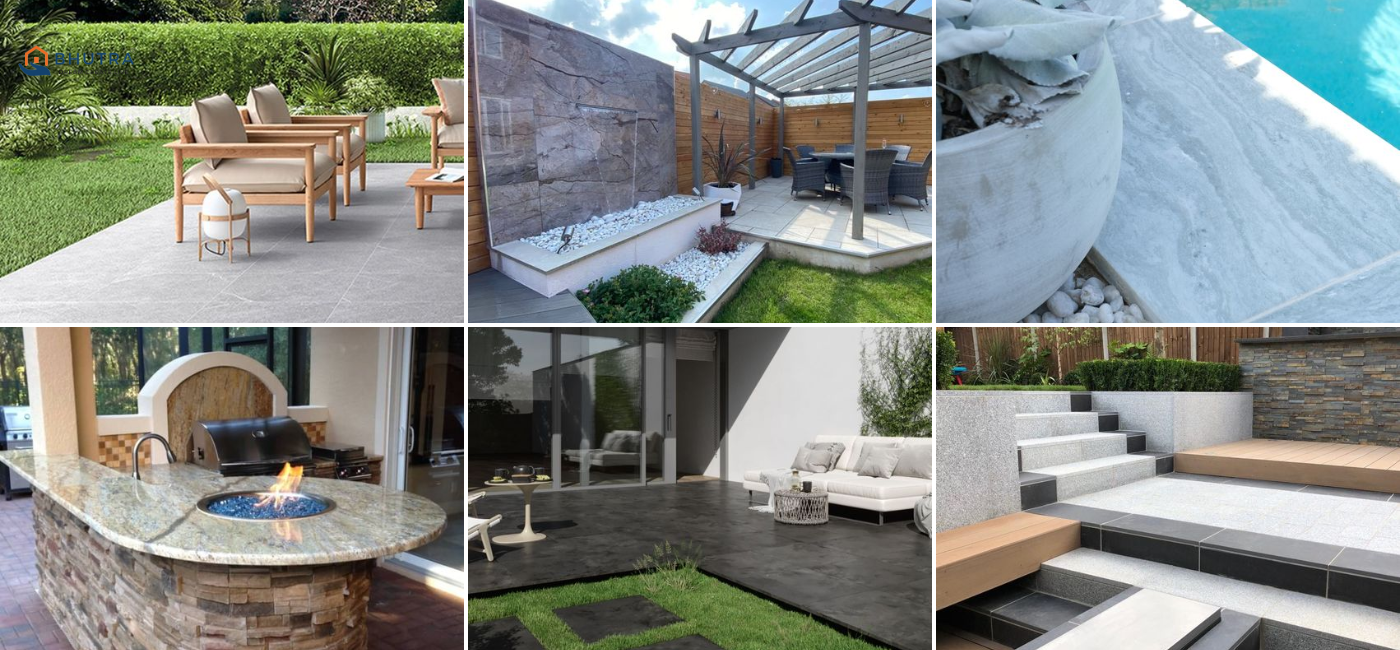 Granite: Known for its natural beauty and variety of colors, patterns, and finishes, granite adds a touch of sophistication and elegance to outdoor spaces. Its speckled textures and unique veining create visually stunning surfaces.