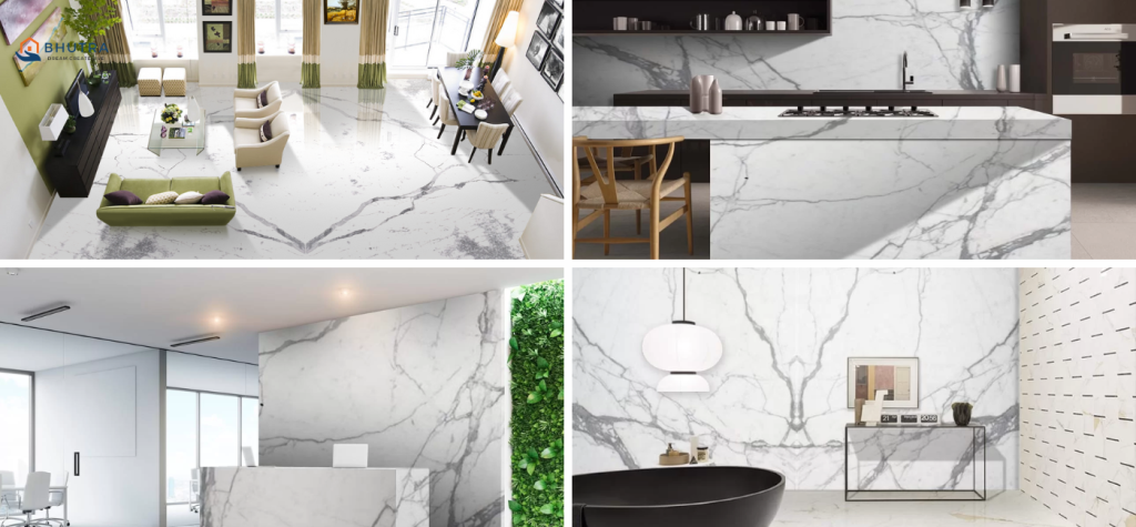 Wall Cladding: Using Statuario Marble for wall cladding adds a touch of luxury and elegance to interiors. Whether it’s in living rooms, dining areas, or hallways, marble-clad walls create a sense of grandeur and refinement.